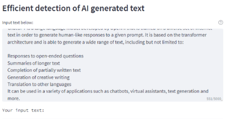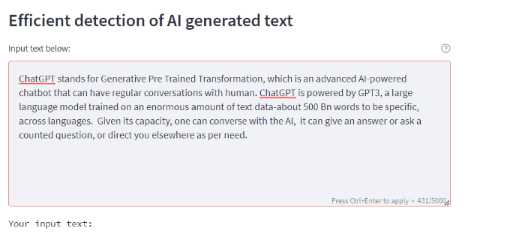 For example, we wrote a brief essay on “What is ChatGPT” and pasted it into the input box, then pushed the Ctrl to enter button; evaluating will take some time.