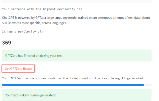 As you can see, this tool returned a report indicating that the text we input was most likely generated by humans.
