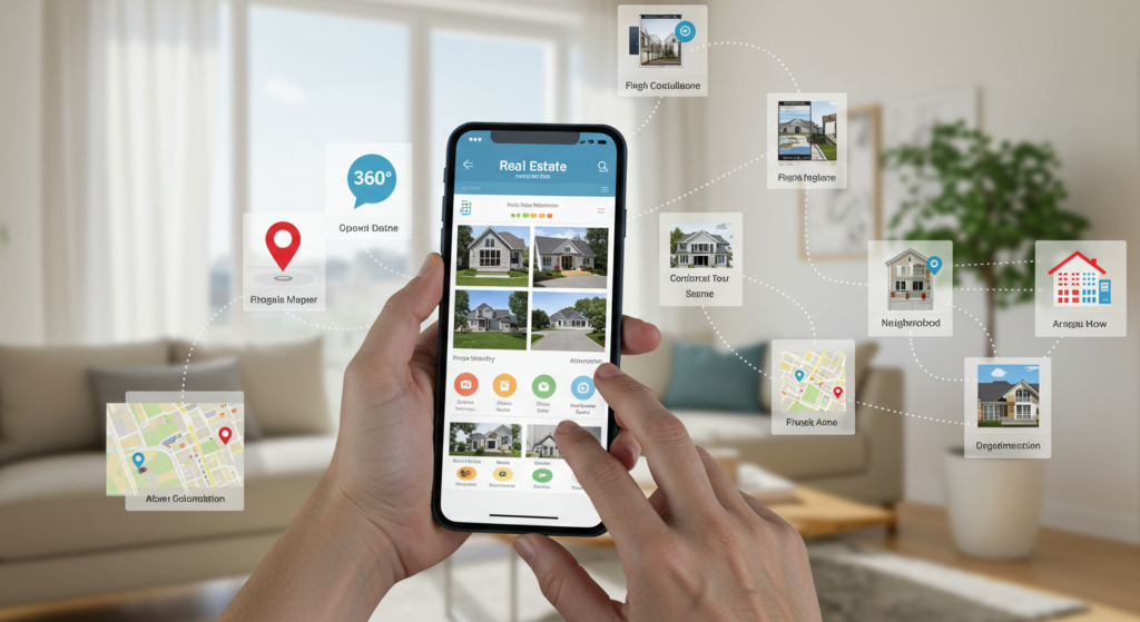 Mobile apps for real estate let users browse listings, see property details, get in touch with agents, and handle transactions with ease.